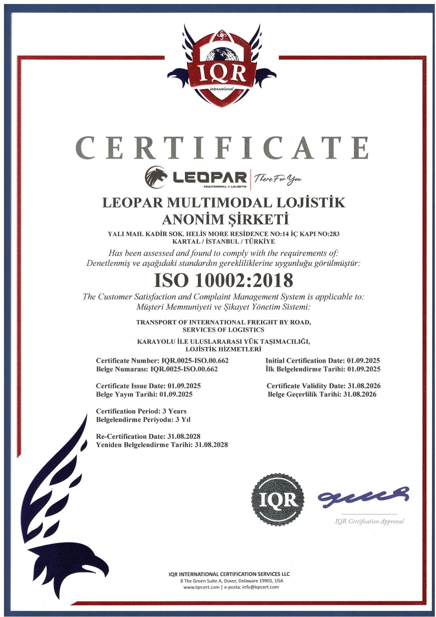 ISO 10002:2018 MÜŞTERİ MEMNUNİYETİ VE ŞİKAYET YÖNETİM SİSTEMİ BELGESİ