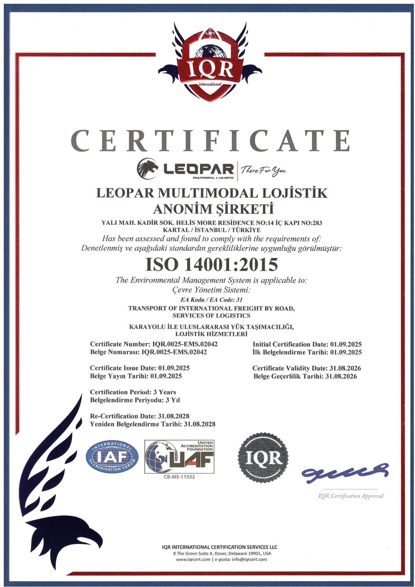ISO 14001:2015 ÇEVRE YÖNETİM SİSTEMİ BELGESİ