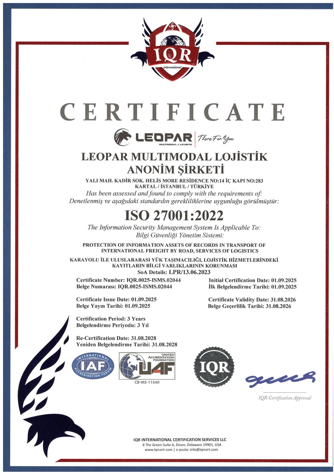 ISO 27001:2013 BİLGİ GÜVENLİĞİ YÖNETİM SİSTEMİ BELGESİ
